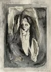 An illustration for Hans Christian Andersen’s story ‘The Red Shoes’, 14.8 x 21 cm, pencil and ink on paper.
